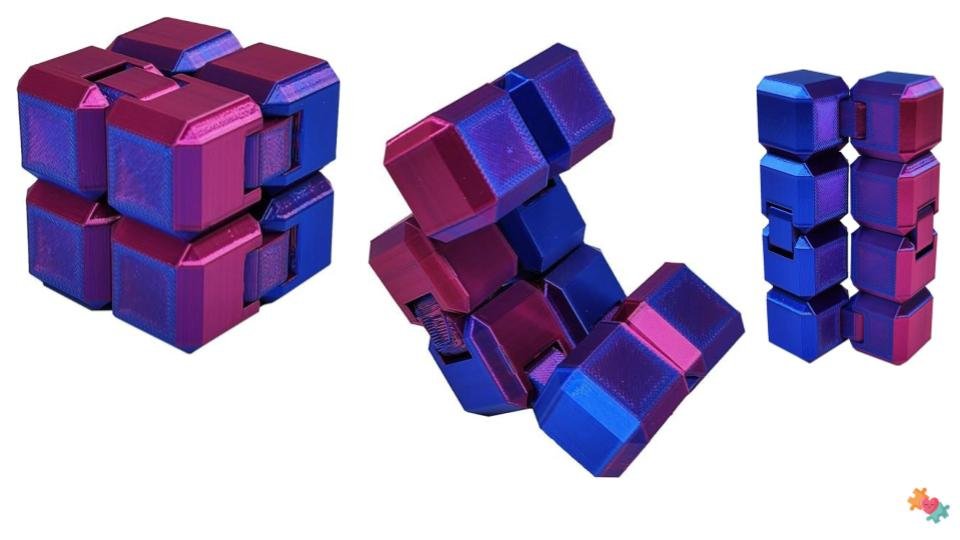 O Fidget Cubo Infinito Anti Estresse Cube Infinity 3D Bicolor, da Kits e Gifts Brinquedos, é um brinquedo sensorial criado para aliviar o estresse, melhorar o foco e proporcionar relaxamento durante o dia. Produzido com impressão 3D em PLA, combina leveza e resistência em um design bicolor moderno e interativo.